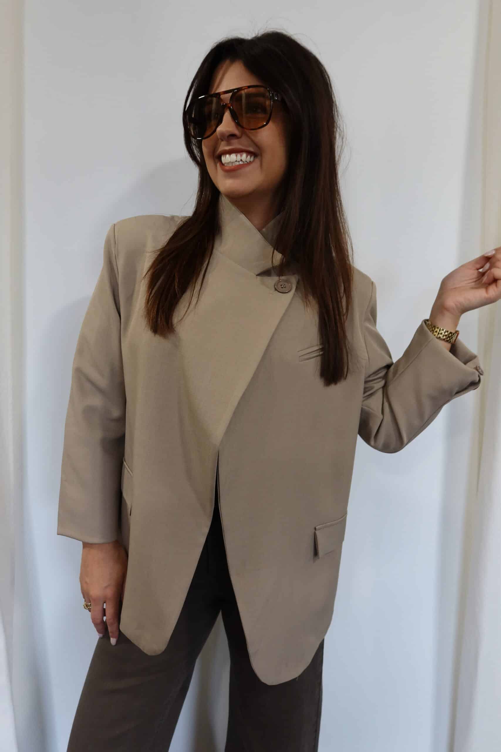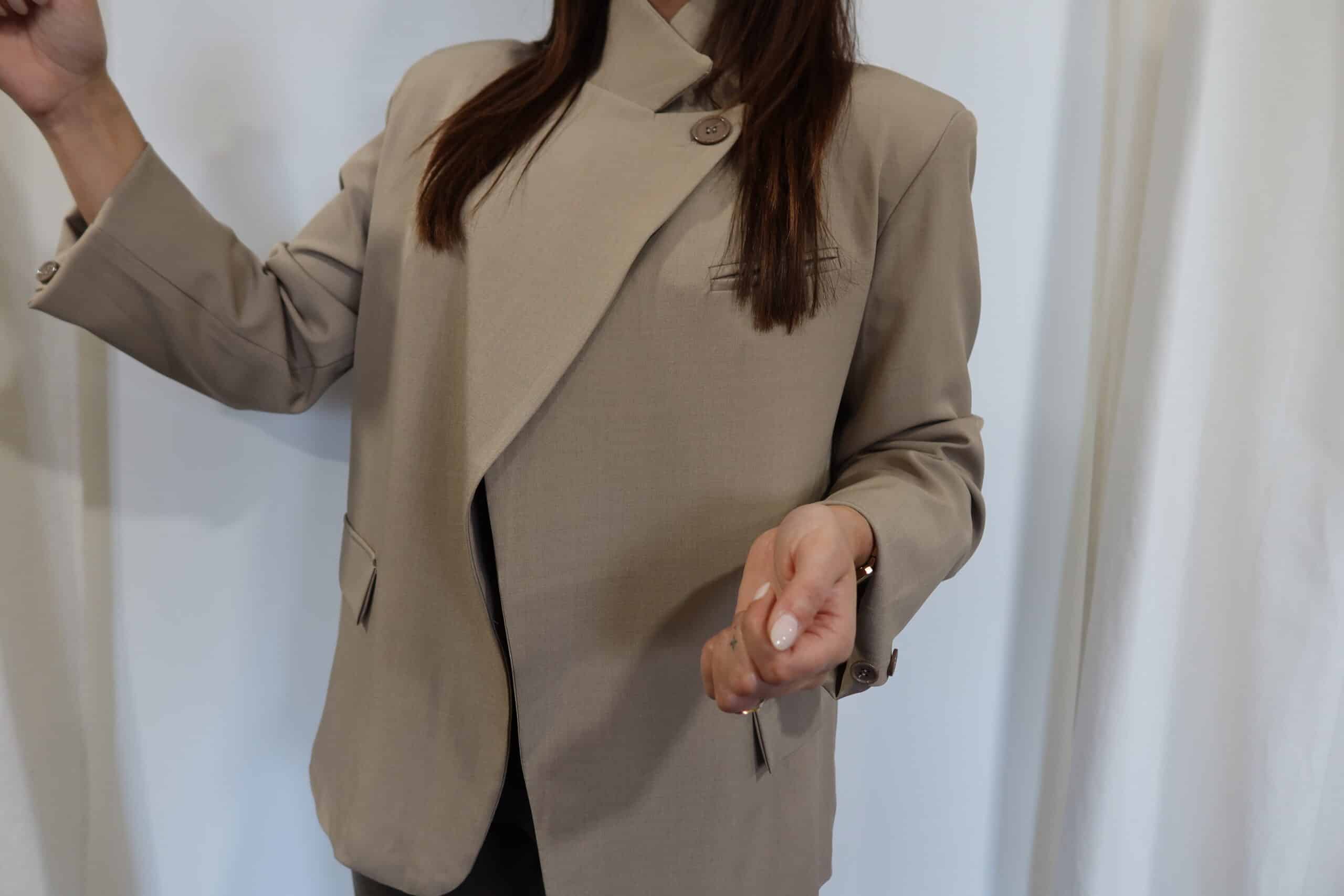 Blazer asymétrique taupe – THOMAS