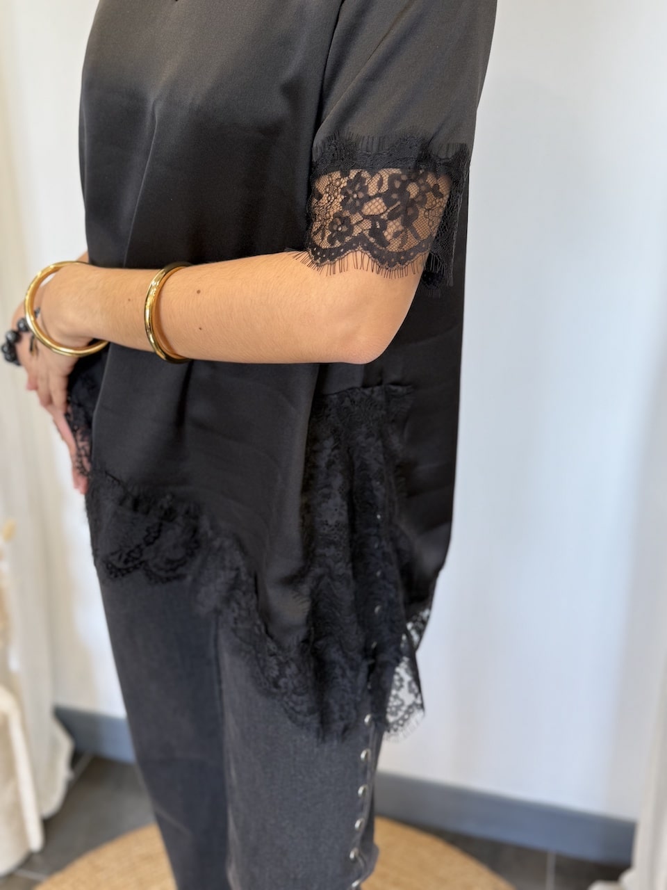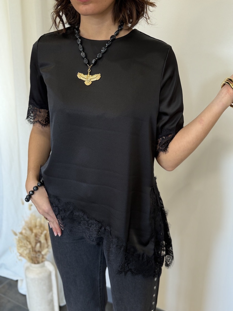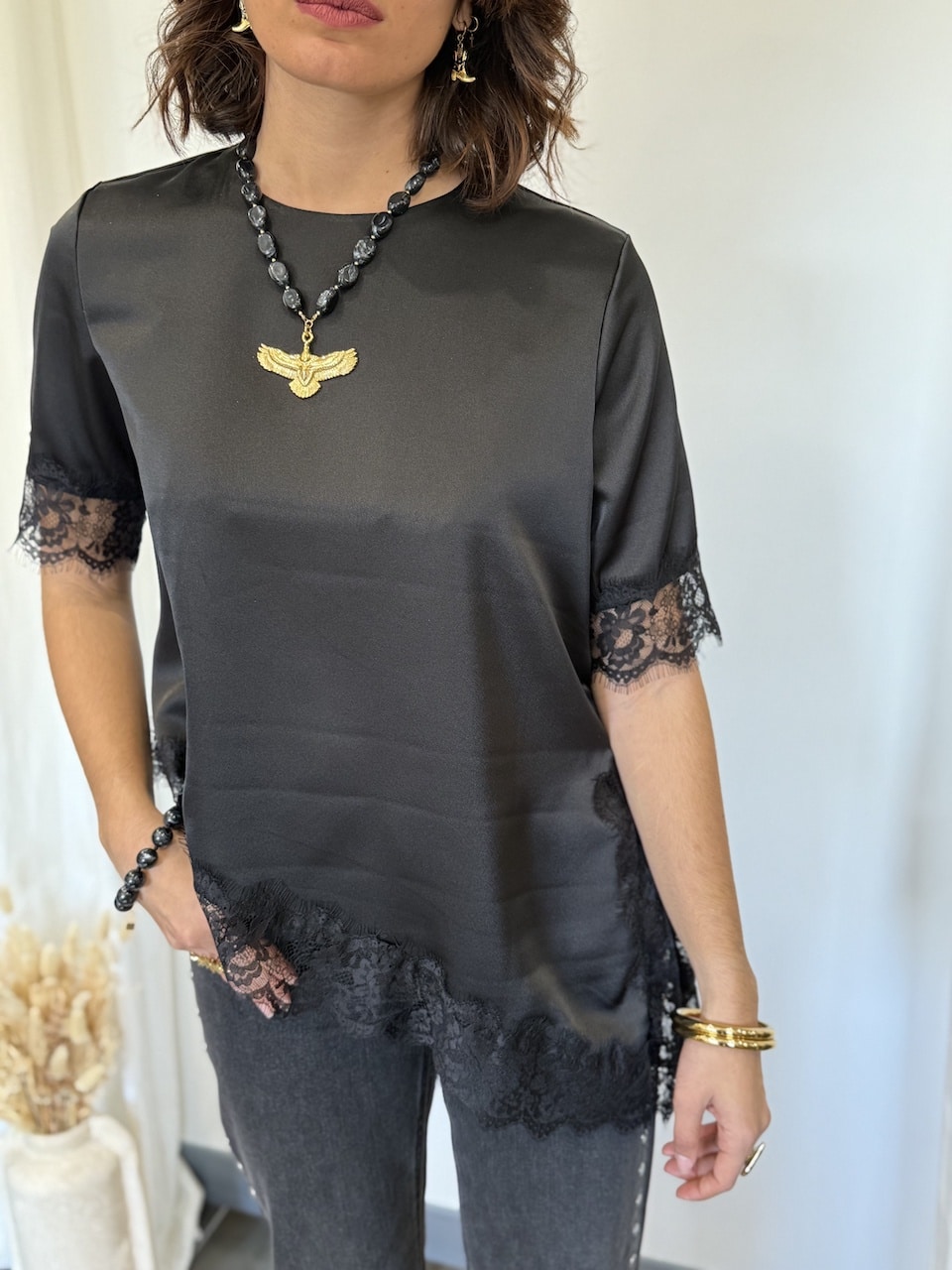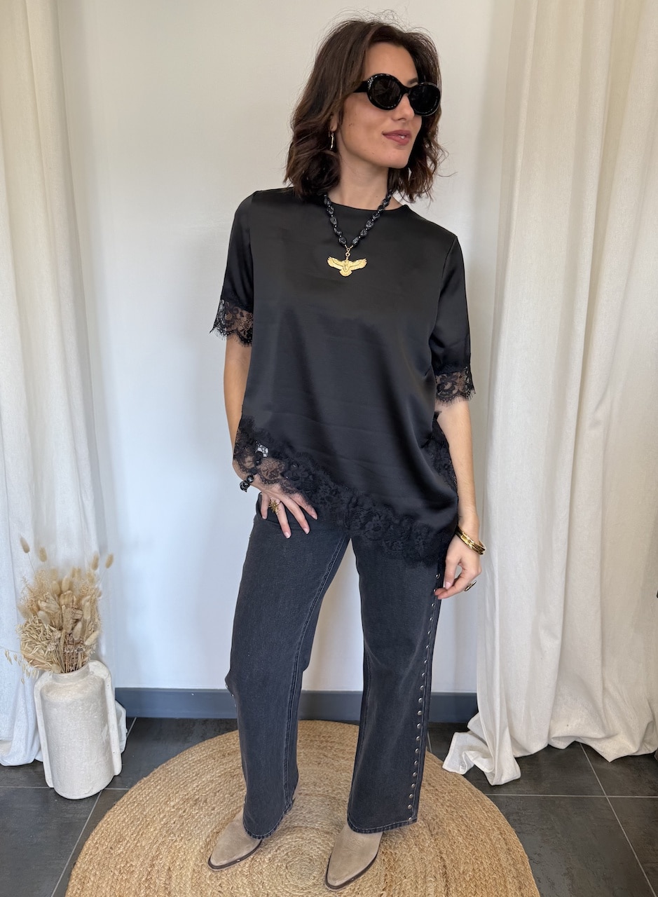 • T-shirt noir à dentelle