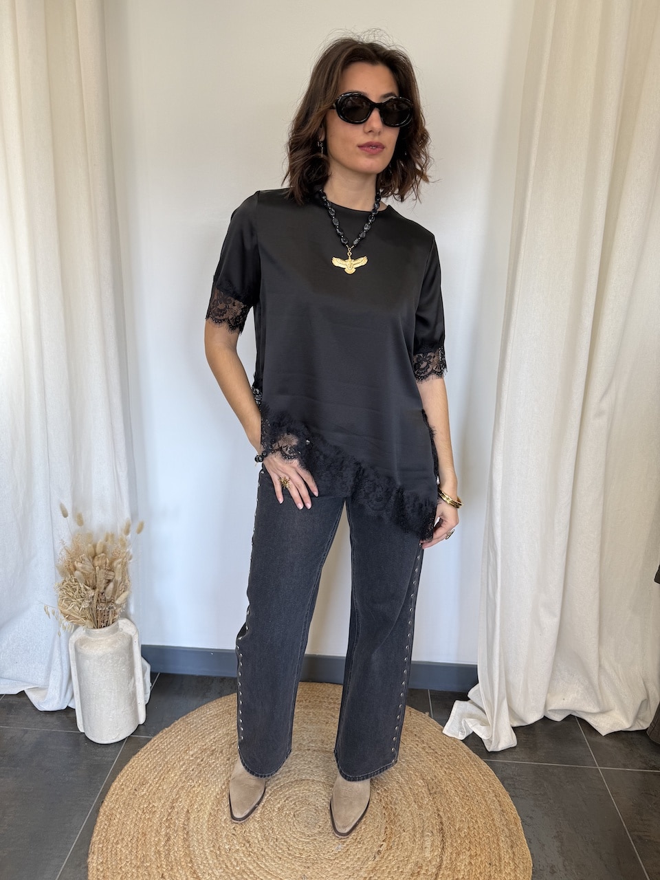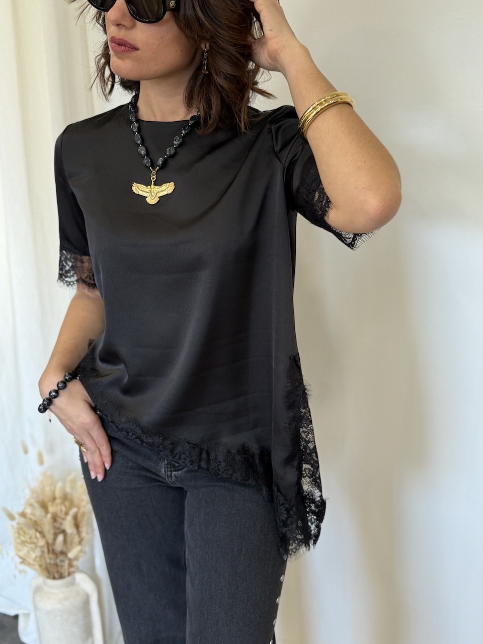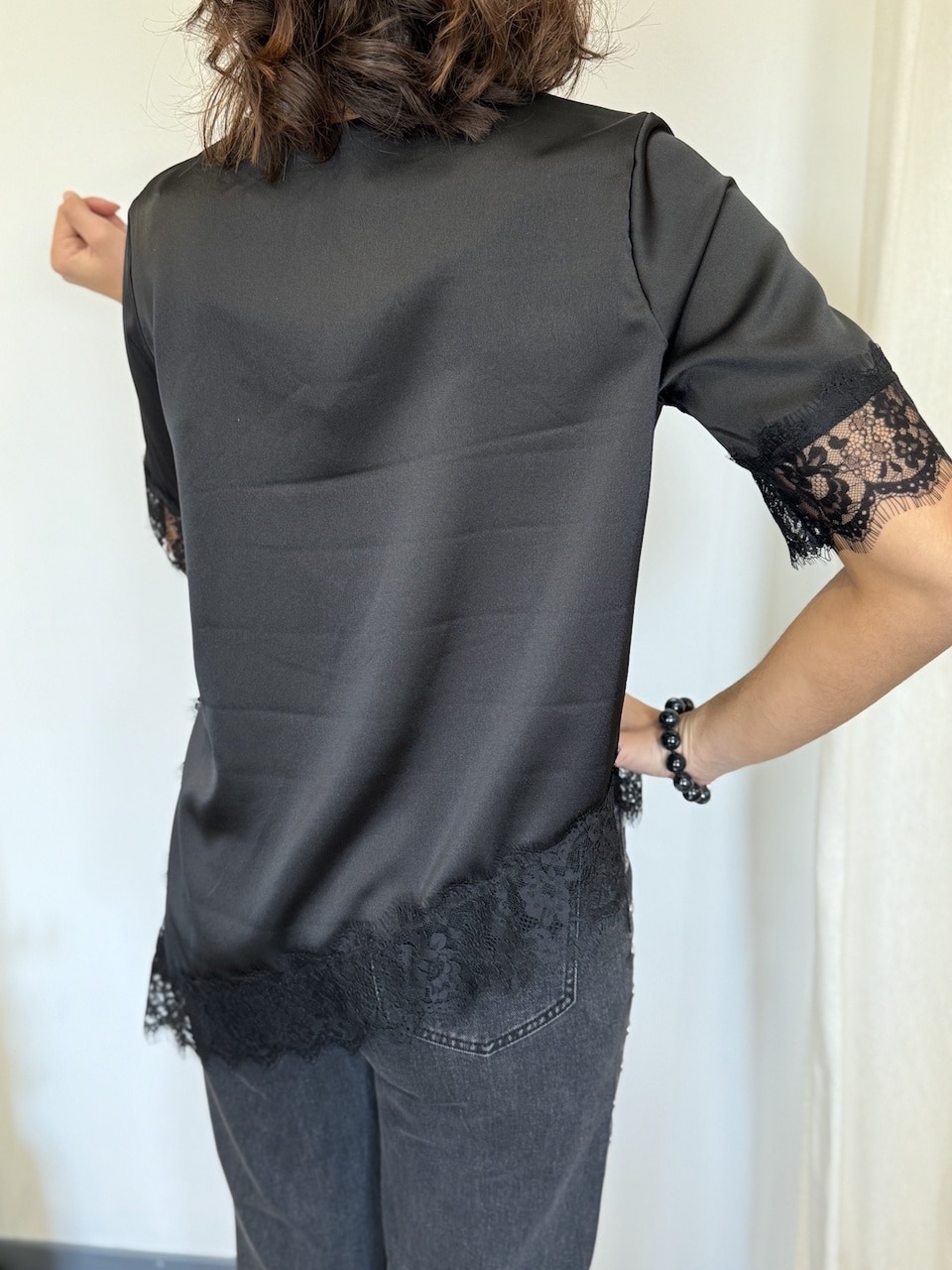 • T-shirt noir à dentelle